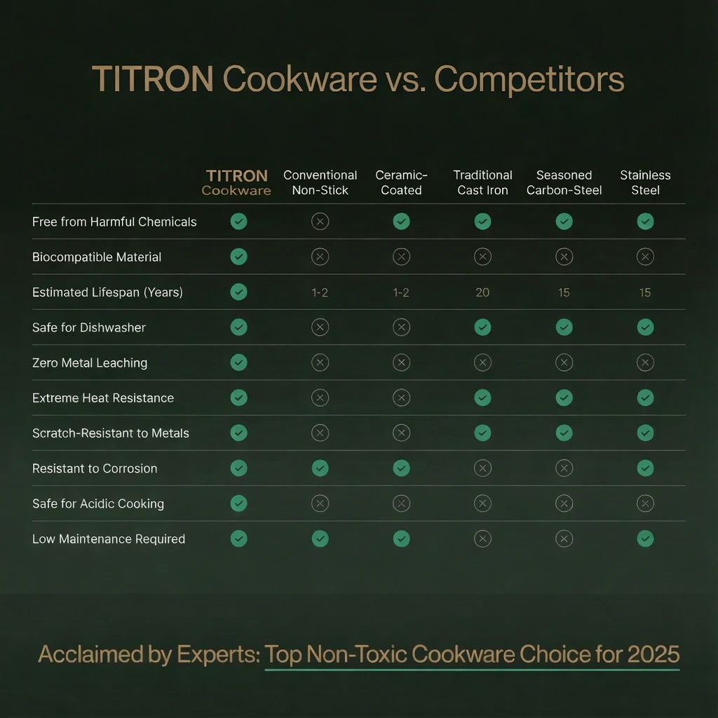 100% pure titanium cooking surface non-toxic, naturally nonstick, and ultra durable